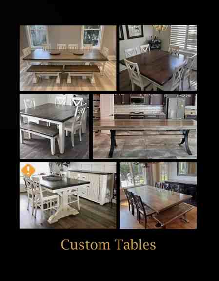 Custom built and hand crafted solid wood tables and home furnishings. Family owned brother and sister company since 2010. A+ BBB and 5 stars on Google. We offer a lifetime structural warranty on all of our products. We offer custom stains and paint colors using Benjamin Moore hard lacquer paint. We offer heat and water resistant top coat. We have been featured on HGTV “Love it or list it”.We offer custom tables, mantles, servers, cubbies, coffee tables, end tables, beds, dressers and nightstands. You will see examples of all of our work at our booth!